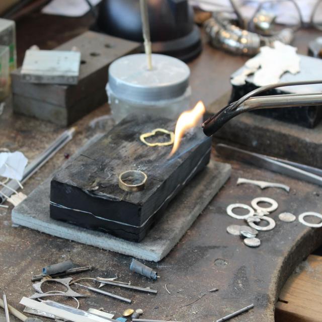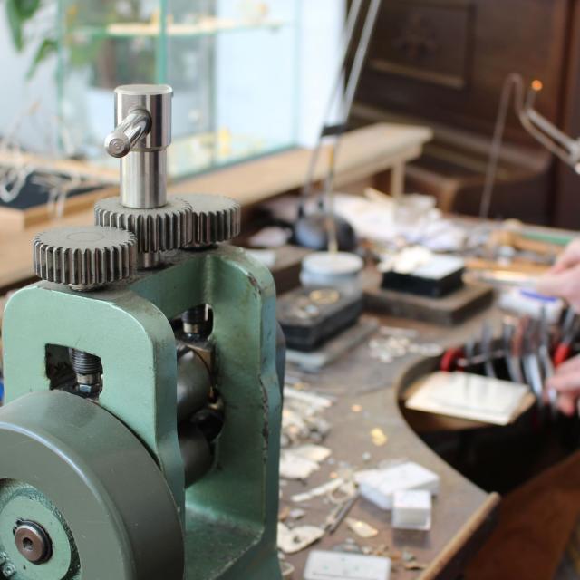 In her workshop, Jutta Behr-Schaeidt designs and creates precious, timeless jewelry by hand, using traditional jewelry-making techniques. Her precious metal creations are numbered and always authenticated by her master stamp and state guarantee. Gold and silver fair-trade.