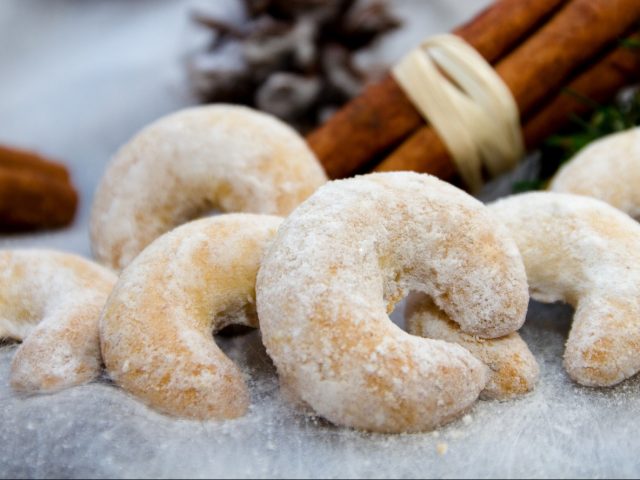 Let them rest for a moment, then roll them carefully in a mixture of powdered sugar and vanilla sugar.