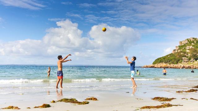 The Coz-Pors beach in Trégastel remains the most spectacular on the coast, and is even one of the most beautiful beaches in France! Watched over in summer, this pretty bay dotted with extravagantly shaped pink granite rocks offers a view that will leave you speechless. Those who love boat trips as much as strolling along the seafront can set off from Coz-Pors beach to discover the superb Seven Islands Archipelago. And the fireworks display fired every year from one of the islets (accessible at low tide) is a thing of beauty. To be admired without moderation from the sand!