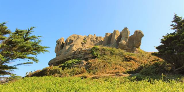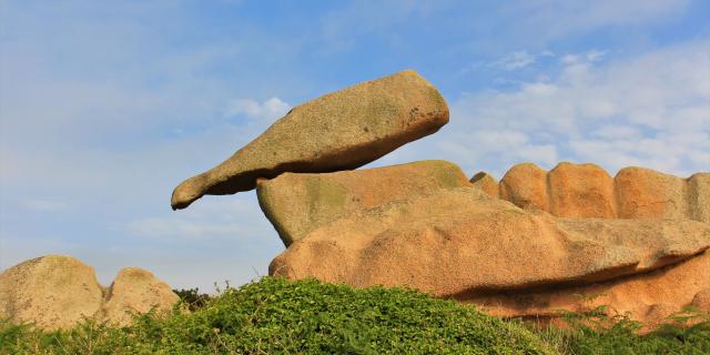 Off the Toul-Trez beach lies a rock, or rather a large cube of granite resting on a pile of rock. It’s called “Le Dé”. It’s only accessible at low tide and can be seen from the start of the Presqu’île Renote. Open your eyes and marvel!