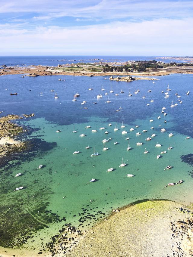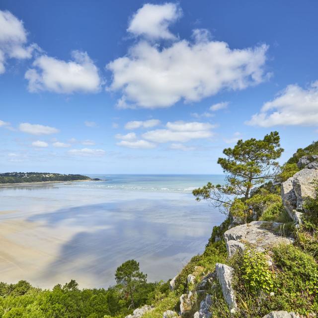Passing the pointe de Beg Léguer, you’ll plunge into the Léguer estuary, which leads you to the historic town of Lannion. Heading back towards the sea, you’ll discover the mysterious site of Yaudet, which dominates the river mouth from the top of its rocky promontory. You then pass the Pointe du Dourven and the Port de Locquémeau to head for the cliffs of Trédrez, following the GR®34, a vast and particularly wild rocky coastline that still offers superb panoramas. This scenery takes you all the way to the Lieue de Grève, a foreshore over 4 km long dominated bythe 84 m high Grand Rocher. Your journey ends at the Pointe de l’Armorique with its charming beaches and small coves, inviting you to take a refreshing break at the archaeological site of the Thermes du Hogolo, the remains of a Romanised Armorica.
